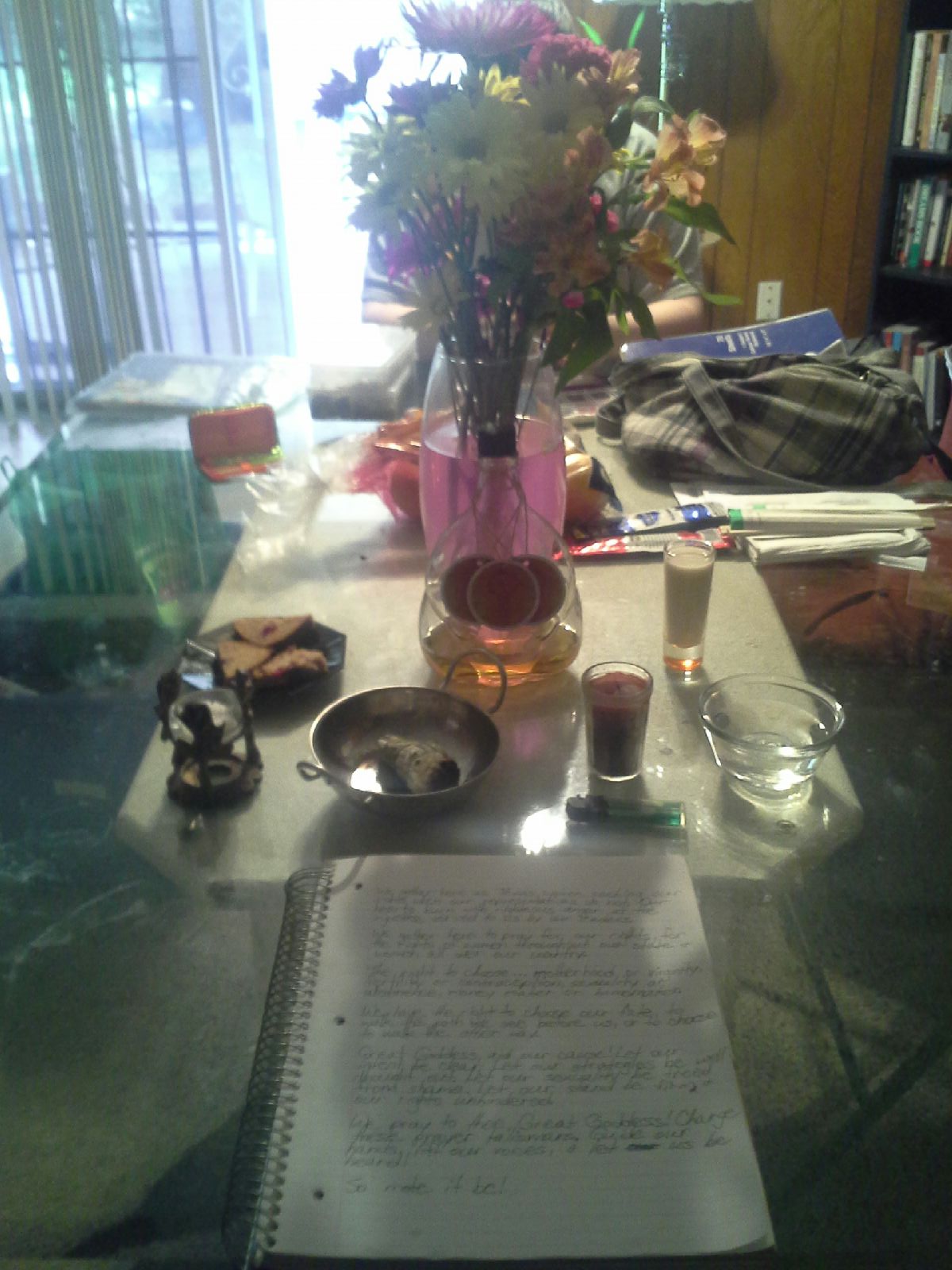 Update: In 2015, I got married to my wonderful wife in my high priestess’ backyard. She used this ritual, with some tweaks and an additional call to Hera (wife’s request) to bless the union.